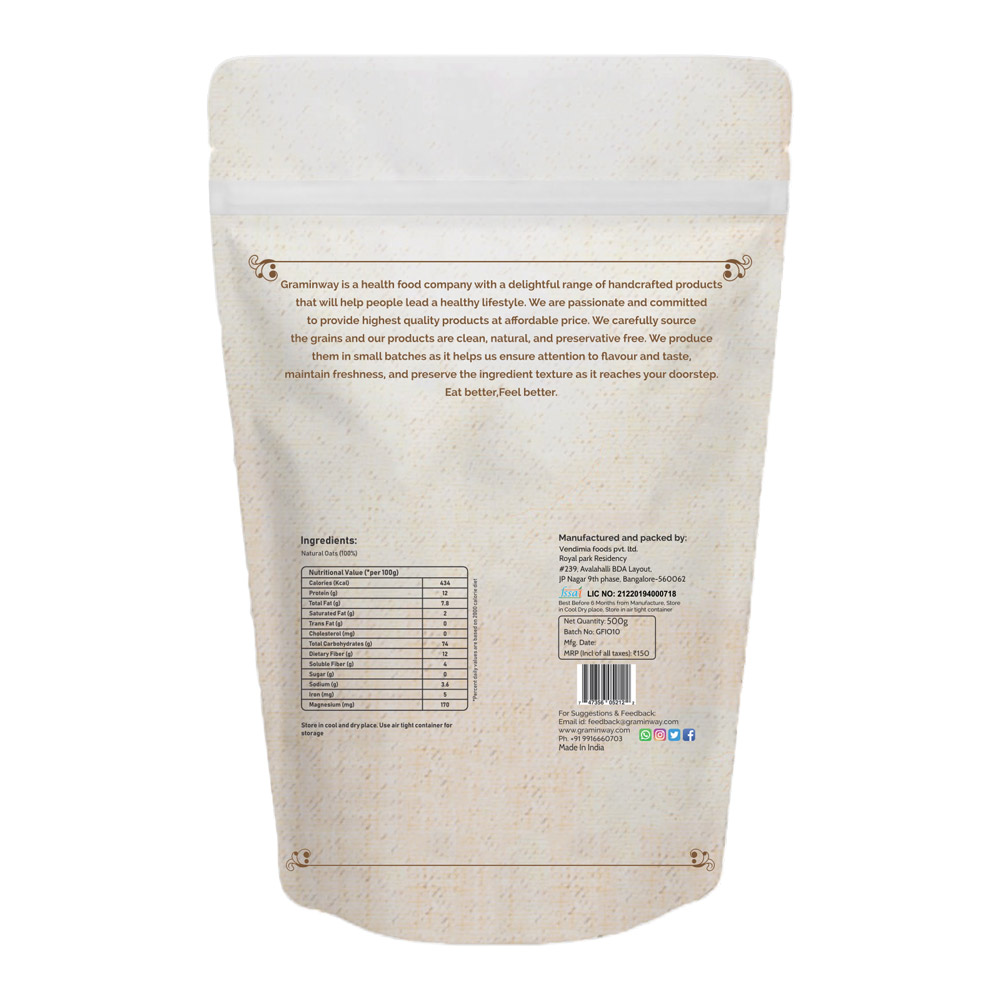 Graminway’s Gluten Free Instant Oats is made from oats sourced from local farmers who practice sustainable, chemical-free agriculture. Our high-quality oats are then taken through stringent quality standards before being rolled and steamed for quick breakfasts on those busy mornings. Graminway’s rolled oats just take 5 minutes to cook. Top it with your favourite fruit and a handful of nuts for delicious, healthy breakfasts everyday!