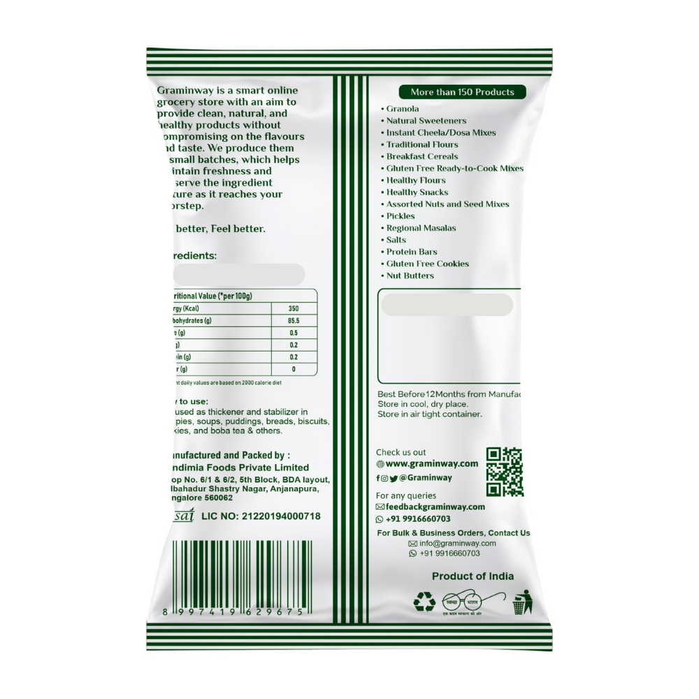 Graminway Rajgira Ka Atta is obtained from Rajgira/Ramadana (amaranth seeds). It is an ideal source of proteins for vegetarians and is mostly consumed during a fast. This flour in gluten-free. This flour is used for making dessert like halwa, ladoo and also used for making dosa, cheela, poori, and chapatti.