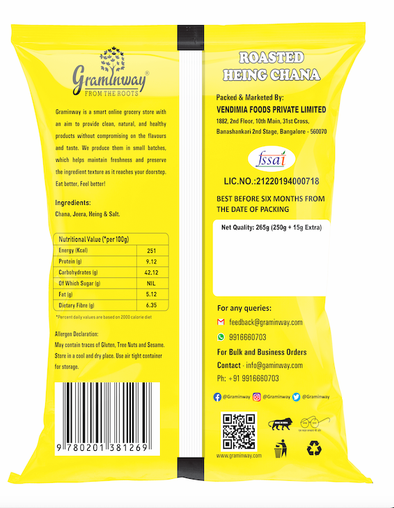 Graminway’s Roasted Heing Chana is made with hand- roasted chickpeas and heing, which come together to let you indulge your snacks carving!