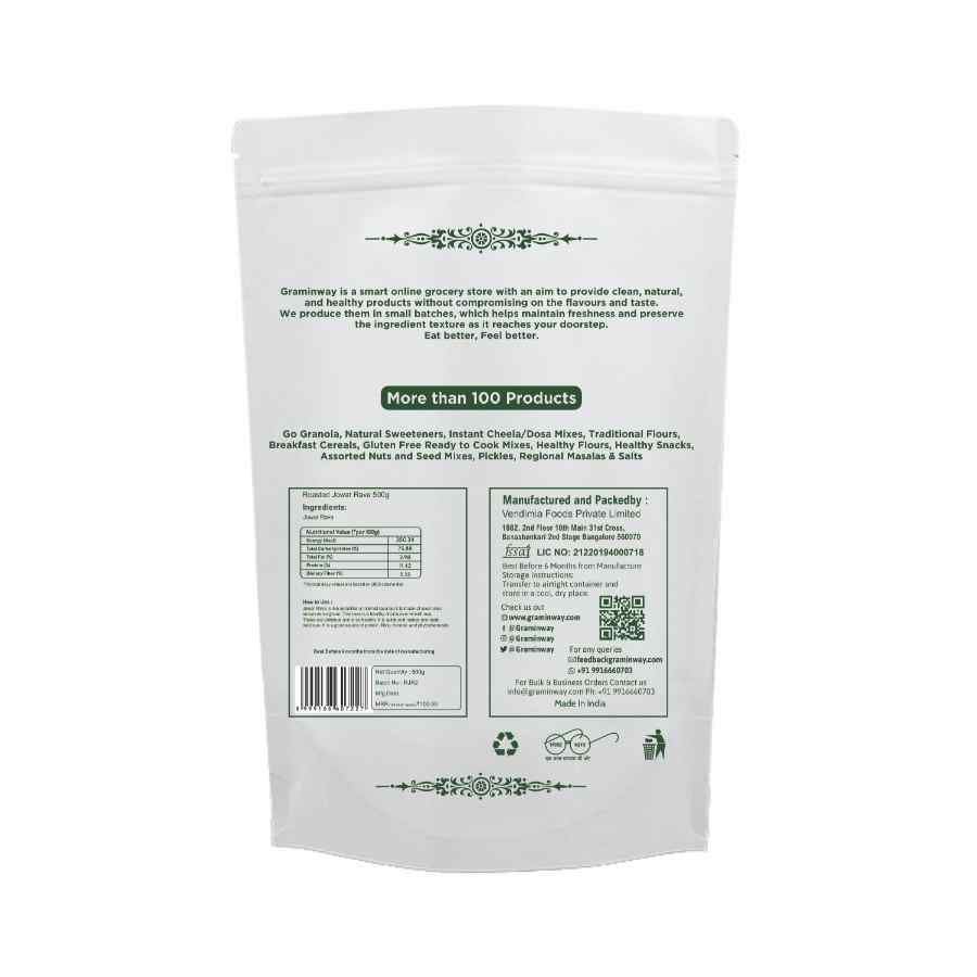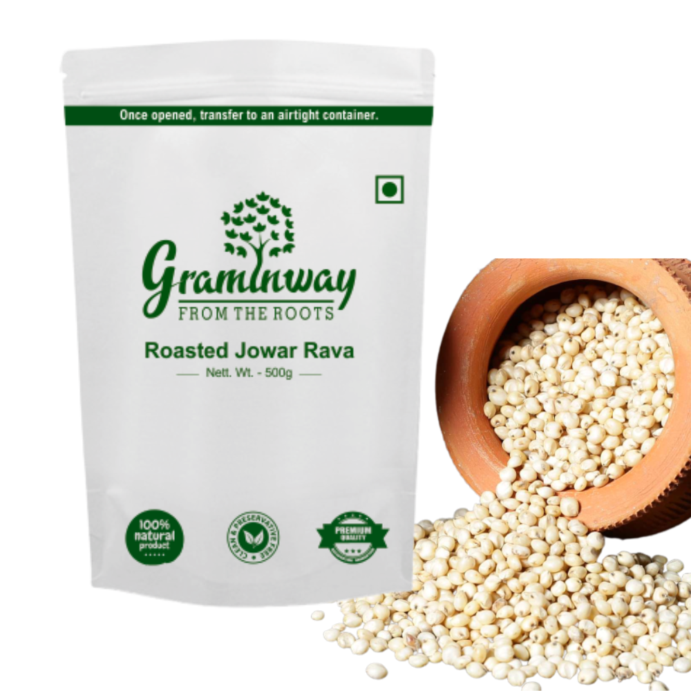 Graminway Roasted Jowar Rava is a product made from roasted jowar, also known as sorghum. Jowar is a nutritious whole grain widely consumed in various parts of the world. The process of making Roasted Jowar Rava involves roasting and milling jowar grains into a coarse powder or granules, similar to semolina or rava. Roasting the jowar grains enhances their flavor and adds a pleasant nutty aroma. It also helps to prolong the shelf life of the product. The roasted jowar rava can be used as a versatile ingredient in cooking and baking, providing a gluten-free alternative to traditional wheat-based semolina.