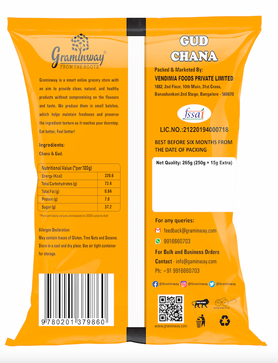 Graminway’s Gud Chana is made with hand- roasted chickpeas and silky, melted jaggery, which come together to let you indulge your sweet tooth!