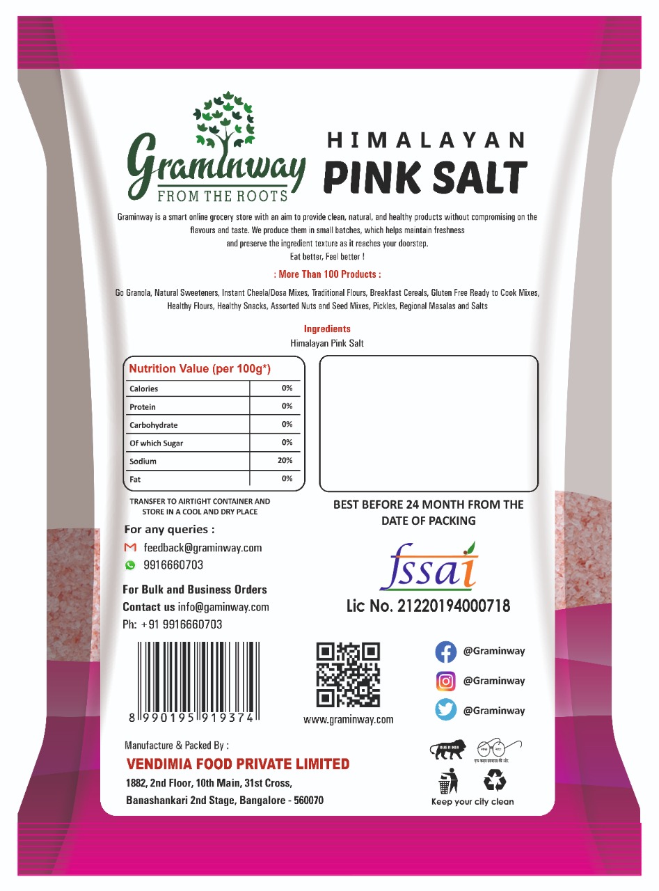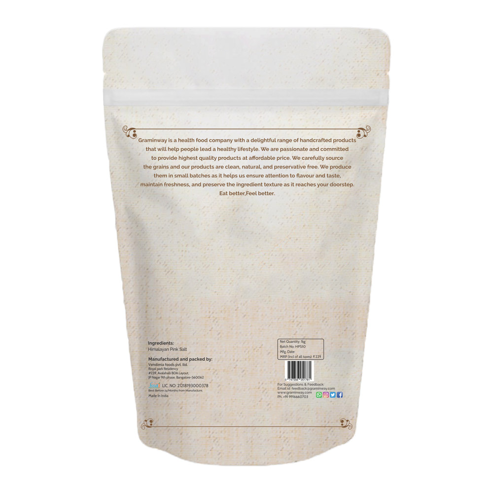 Graminway Himalayan Pink Salt is purest form salt, rich in traces of 84 minerals, it has lots of health benefits such as detoxifies the body by balancing pH, helps in balancing blood sugar, helps blood pressure because it provides unrefined, mineral rich salt and it also support weight loss by balancing hormone balance.