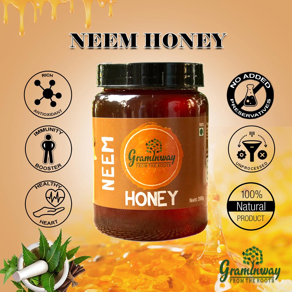 Graminway Neem Honey is unheated and unpasteurized, and therefore retains all the beneficial immunity-boosting enzymes, antioxidants, and minerals of natural Neem flower honey. It soothes a sore throat and helps with digestive issues. The mild refreshing sweetness of our 100% pure Neem Honey makes it an excellent, low-calorie substitute for sugar!