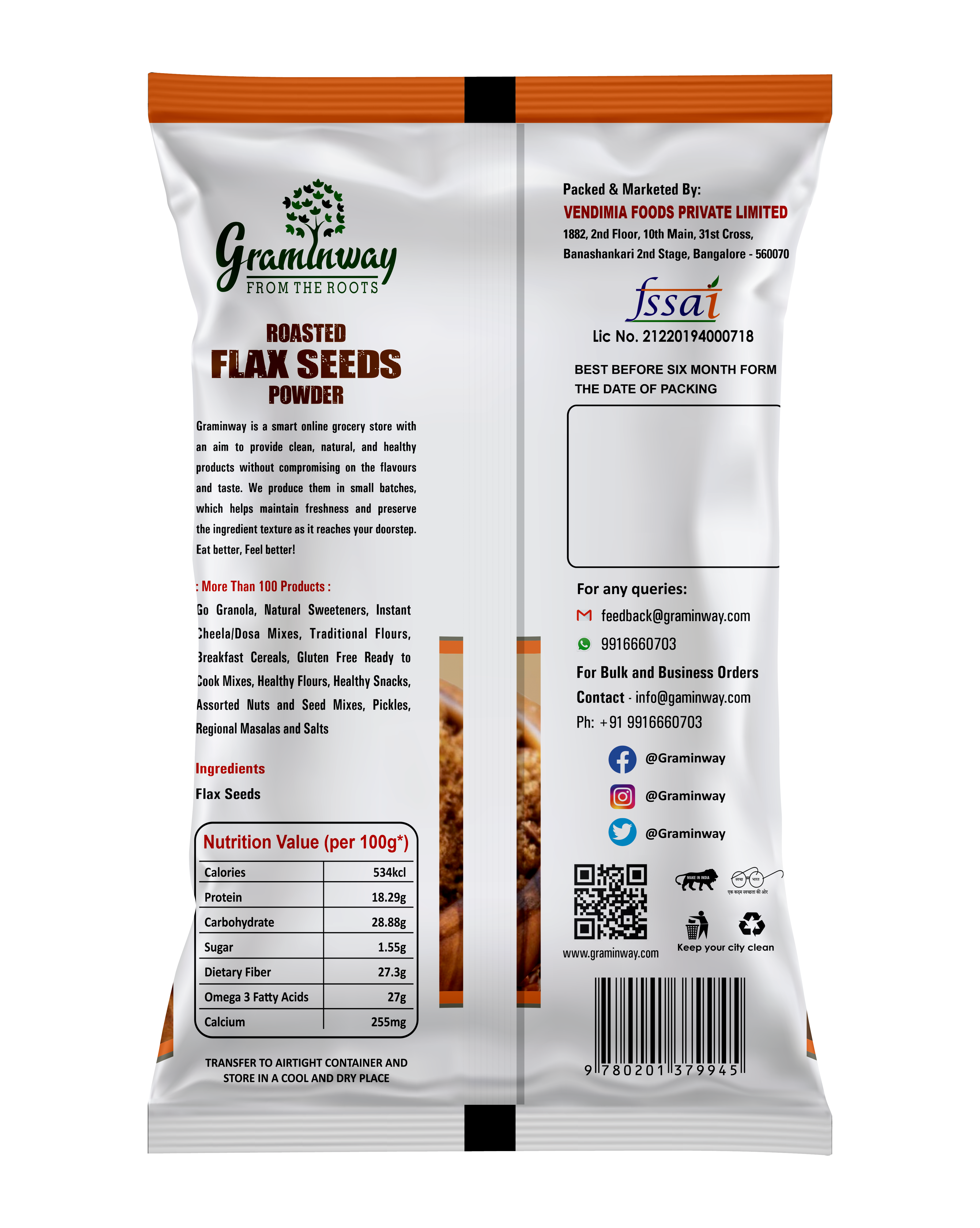 Graminway’s Flax Seeds Powder are sourced from farms across India direct from the growers to retain its freshness and quality. We roast flax seeds to bump up its naturally pleasant nutty flavor and blend in with a variety of dishes from breakfast cereals to desserts. Try it out and we can guarantee you won’t be disappointed!